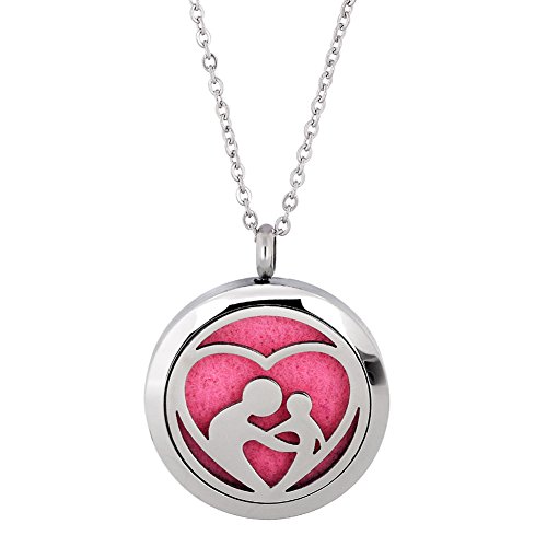 LHPNB 1 PCS 20MM/25MM/30MM Pattern of Mother And Son Locket(With Chain) Essential Oil Aromatherapy Diffuser Three SIZE Available+3 Felt Pads