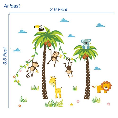 ZRSE DIY Removable Jungle Animal Kindergarten Baby Room Stickers Wall Decals Cartoon Monkeys & Coco Nut Tree Nursery Decal Easy to Peel Easy to Stick...