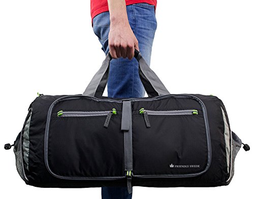 HIGH QUALITY: The Friendly Swede Foldable Duffle Bag is made of high quality, 210D grade, rip-stop nylon. The zipper is an SBS zippers which assures better quality. We recommend that you wash the bag for hand so that the bag will do the job with a long life span.