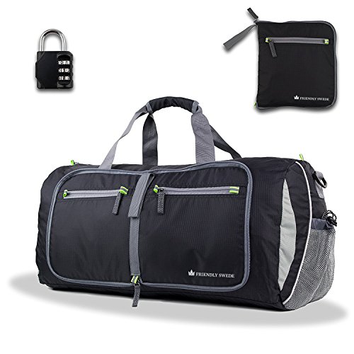 The Friendly Swede Foldable Lightweight 48L Travel Duffel Bag with Padlock