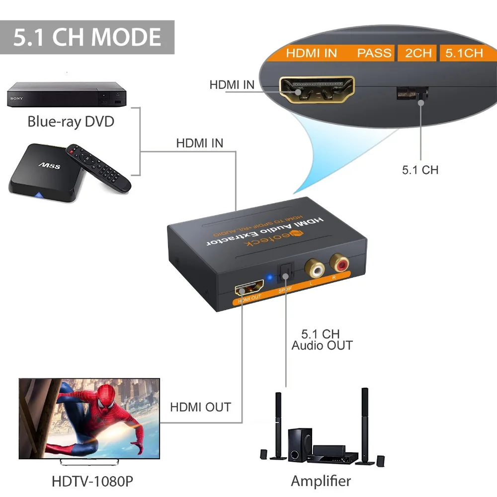 Digital to Analog Extractor :HDMI TO Optical RCA Audio