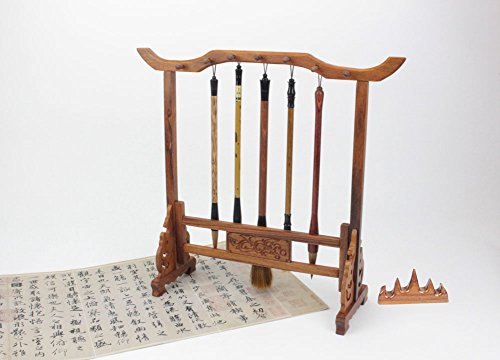 Easyou Rosewood Calligraphy Brush Holder Sumi Brush Hanger Calligraphy Brush Stand Shelf 14pins+ Rosewood Brush Holder1pcs