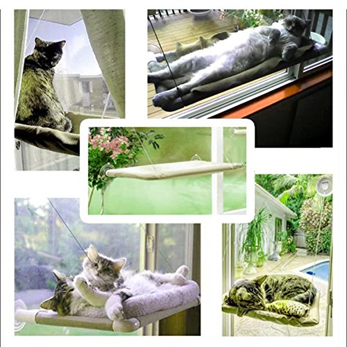 -. Feature : ✔ Size: 55 * 35 cm / 21.7" * 13.8", can seat two cats, enjoy their play time together. Your cats will love playing with it! / ✔ Give your cat a sunny seat with a great view of nature and keep you cats rest and enjoy sunshine without taking up valuable space in your home. / ✔ Industrial strength suction cups and cables hold up to an amazing 30 lb , holding your cat bed firm to any window. / ✔ Durable and removable cover is easy to remove and it's machine washable and built to withstand scratching . / ✔ Installs in seconds to any clean and non-porous surfaces, such as glass window or door.