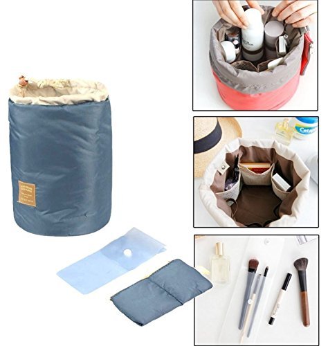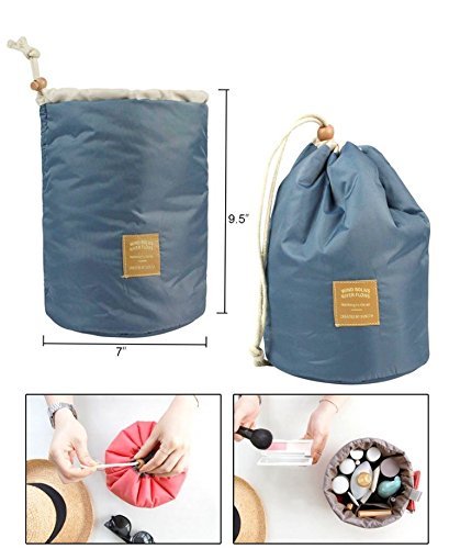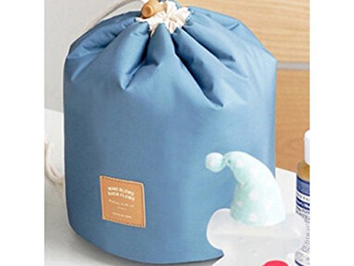 Cosmetic bag / Travel Make-up Bag / Cosmetic Pouch Handbag Toiletry Kit Organizer Round Standing with Drawstring Closure -Blue, Pink