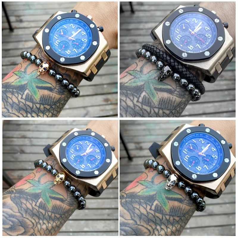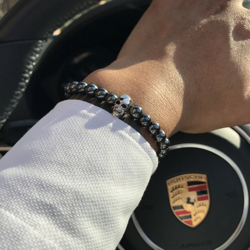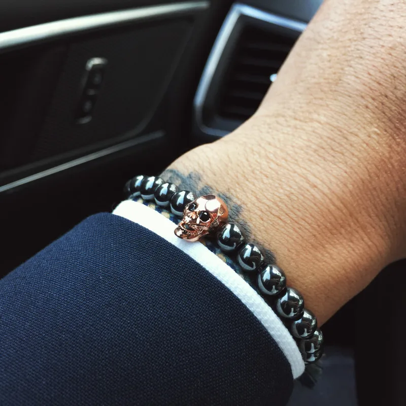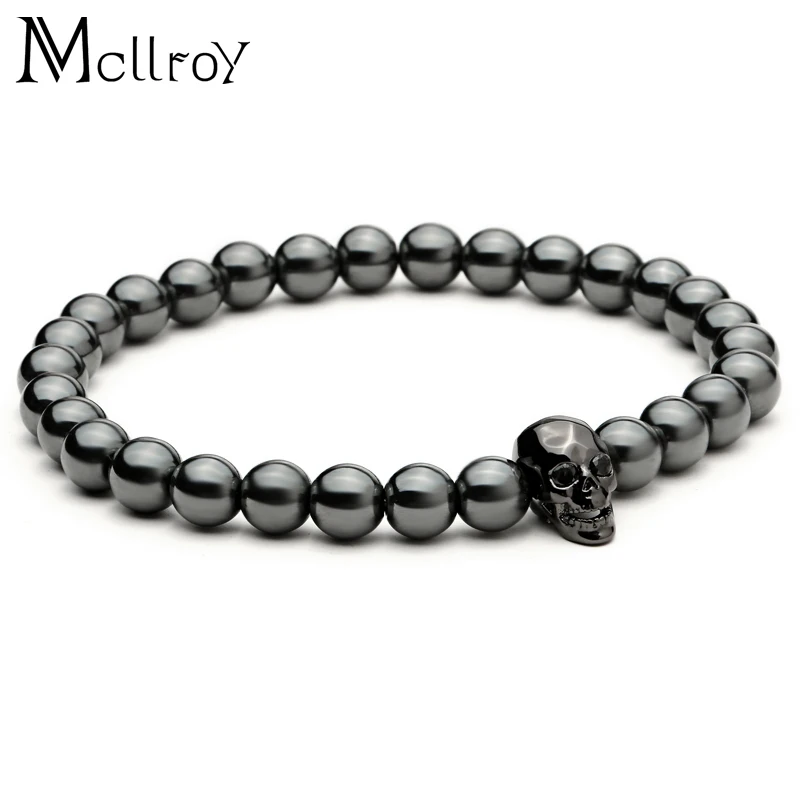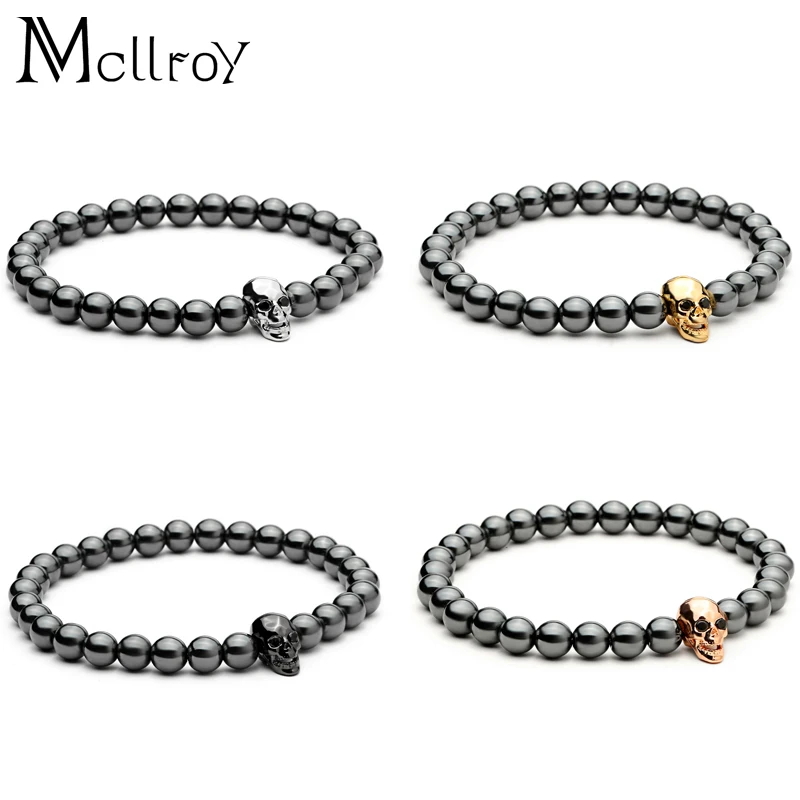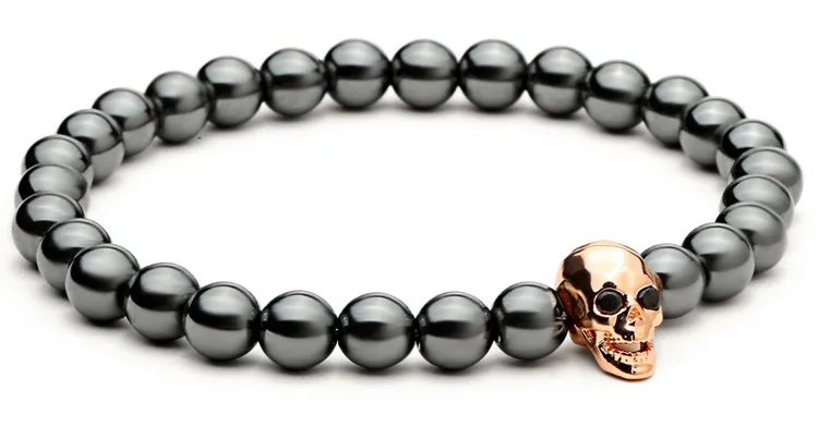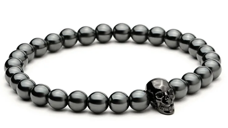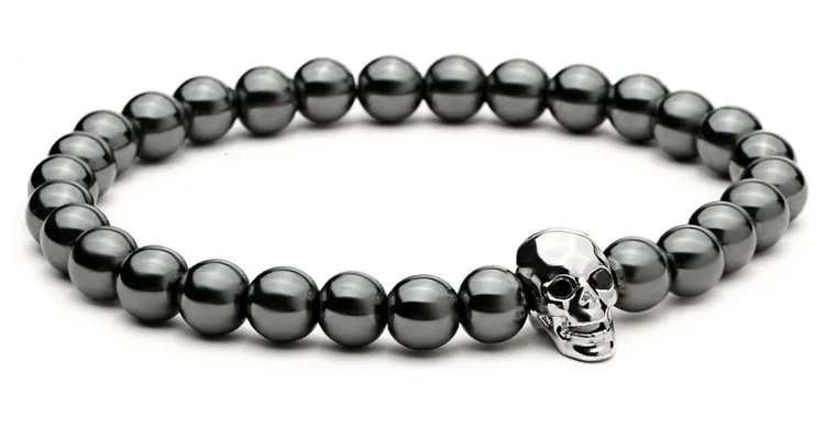 fashion men bracelet:Men Skull Bracelets Hematite Beads