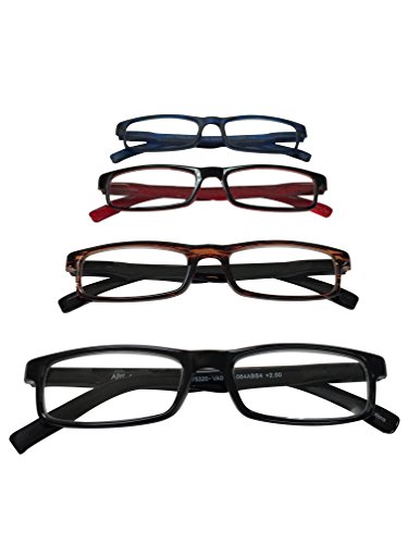 ABS by Allen Schwartz High Quality Reading Glasses - Four Pack Featuring Stylish Designs - Blue / Brown / Red / Black - 2.0