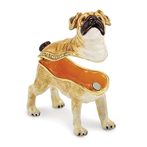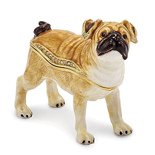 Bejeweled Tan/White Pug Trinket Box