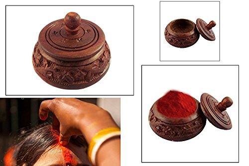 Special valentine day gift, Small Decorative Wooden Handmade Kumkum Box, Brown Color Sindur Dabbi, Aarti Thali Decoration Dabbi, Kumkum Holder, Women's Accessories - 2.2"
