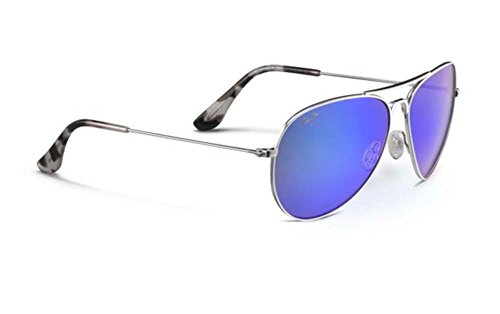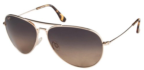 FEATURES of the Maui Jim Mavericks Polarized Sunglsses Aviator frame complements small to medium faces A double bridge design with adjustable, non slip silicone nose pads Pure titanium frame is lightweight, durable and comfortable Anti corrosive traditional hinge Gloss finish for a sleek lookFeature