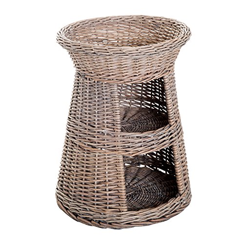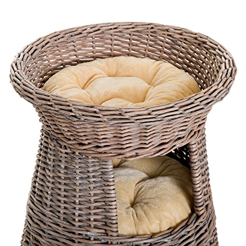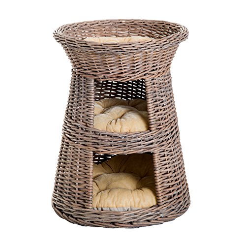 -. Feature : ✔ MULTI-TIER DESIGN: 3-tier cat condo with modern design brings exciting new options for sleep and play. 2 tiers with wide opening and the top one is an open lounging bed. / ✔ NATURAL MATERIALS: Built using eco-friendly, natural, and handmade wicker material in solid construction. / ✔ DURABLE CONSTRUCTION: Made to withstand up to 11 pounds for long-term use for a cat's sleeping, lounging, and bird-watching. / ✔ MULTI-USAGE: Made of natural wicker, so can be used both indoors and outdoors. / ✔ PADDED CUSHIONS: Each tier is equipped with a heavily padded, button tufted cushion for extra cozy comfort.
