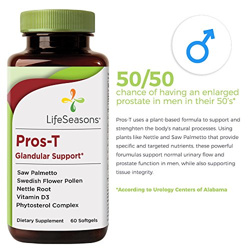 -. Feature : NATURAL PROSTATE SUPPORT SUPPLEMENT: Support normal urinary flow and prostate function with LifeSeasons' Pros-T Glandular Support. This prostate support supplement is curated with natural, clinically-tested ingredients that support tissue integrity to help you achieve lifelong, optimal health. / TARGETED FORMULA TO HELP MAINTAIN PROSTATEHEALTH: This plant-based, natural supplement is formulated to help support normal urinary flow and prostate function in men, making it easier to for you to get back in the flow. / CLINICALLY-TESTED INGREDIENTS: Our Pros-T formula is designed to help support normal prostate function by using ingredients like Saw Palmetto, Vitamin D-3, Vitamin B6, and Nettle that help to support good urinary flow in men. / COMMON RESULTS: The effects of Pros-T are usually noticeable after taking it for one to two months, but some people will see a noticeable difference within one to two weeks. Most people notice an increase in volume and intensity of urine flow, and they find they are not having to get up to urinate at night as often. / FIND YOUR FORMULA: LifeSeasons creates supplements to support your body's health. Our expertise is at the heart of every formula that we create as we balance the wisdom of nature and the progress of science through natural health supplements.
