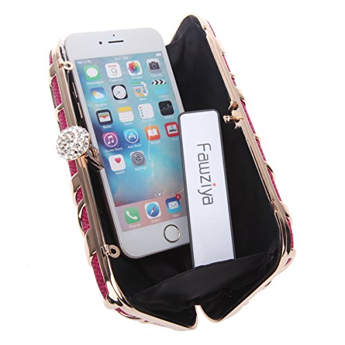 [Description] Diamonds:Fawziya use domestic grade A diamonds_12 cutting surface_a long-lasting gloss retention_one of leader in high class diamonds. Hardware:Fawziya using K Gold plating process_each hardware is carefully selected_no scratches_no rust on the surface. Fabrics:Fawziya use silk and satin_these materials are light_soft_colorful_shiny_noble and elegant. The approximate size is 16(L)x3.5(W)x11(H)cm_Chain:35cm short chain and 120cm long chain removable. Ideal for holding essentials like keys_mirror for touch-ups_ lipstick and an iphone 7.