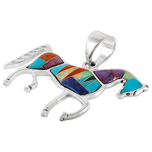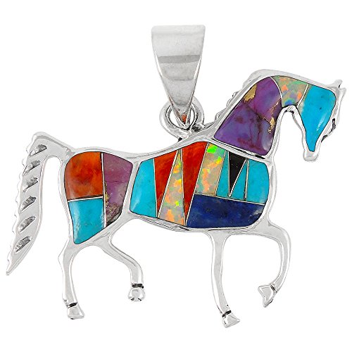 Majestic horse pendant in sterling silver and genuine gemstones. Approx 1.25" wide x 1.25" tall (see ruler image).Chain is NOT included.