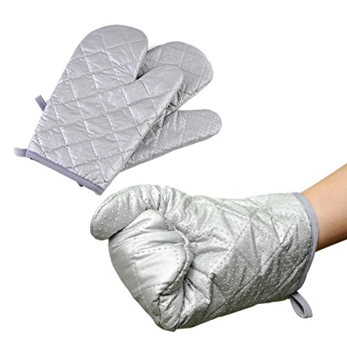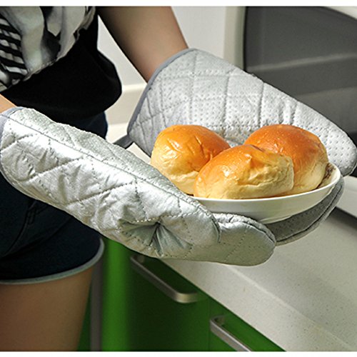 Oven Mitts Xshion 1 Pair Heat Resistant Gloves for Kitchen Cooking Barbecue Grilling Sliver