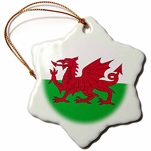 -. Title : Wild Bramble 3-Inch Porcelain Snowflake Decorative Hanging Ornament, Flag Of Wales-Welsh Red Dragon White And Green-Y Ddraig Goch Uk Great Britain