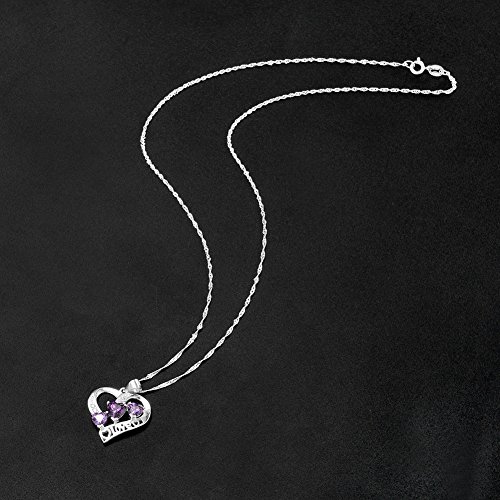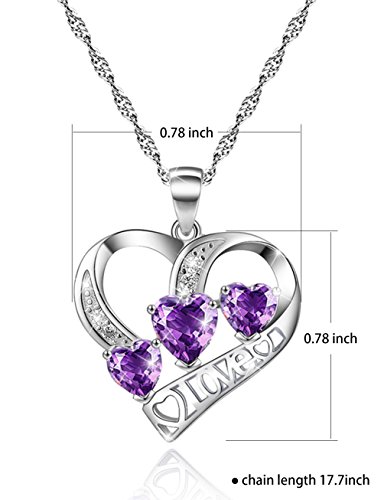 This beautiful necklace consists of a chain and a pendant contained a 925 sterling silver open heart, featuring ten cubic zircon crystals in a gorgeous shade of purple.With "love" engraved in of the necklace. It consists of a clasp round socket ratchet.