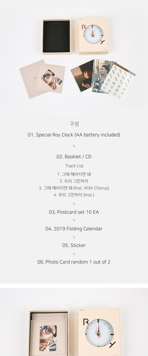 構 成:スペシャルロイ時計+CD+ブックレット+はがきセット(10EA)+2019おりたたみカレンダー+ステッカー+フォトカード1種(全2種の中1種ランダム)