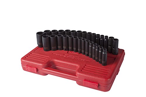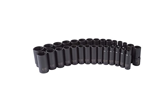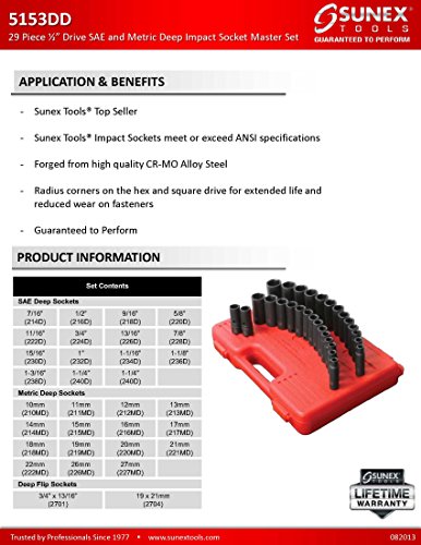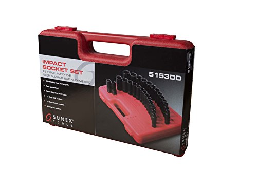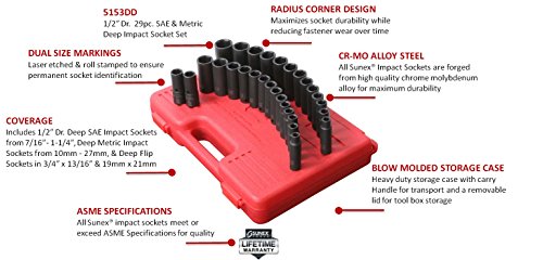 Sunex 5153DD 1/2-Inch Drive Fractional Metric Deep Impact Socket Set, Inch/Metric, Standard/Deep, 6-Point, Cr-Mo, 7/16-inch - 1-1/4-Inch, 10mm - 27mm, 29-Piece
