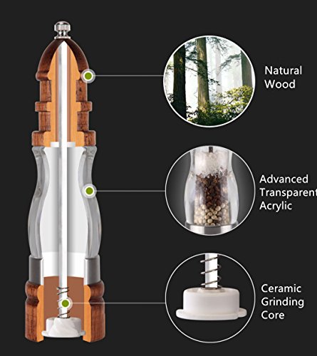 (Fecihor)/Kitchen Dining/Cook's Tools Gadgets/DIRECT FROM USA/Fecihor Oak Wooden Salt and Pepper Mill Grinder - 1 Pcs 8 inch Tall Salt Grinder and Pepper Mil...
