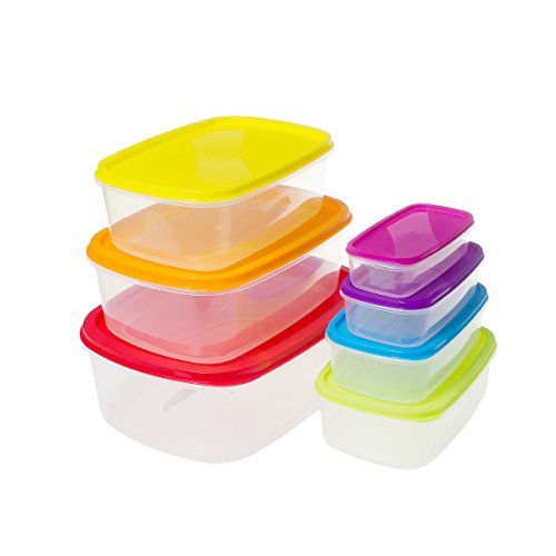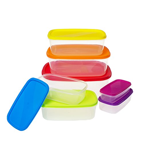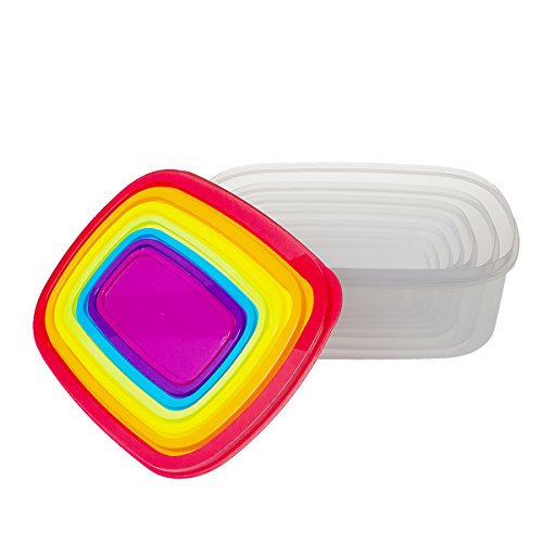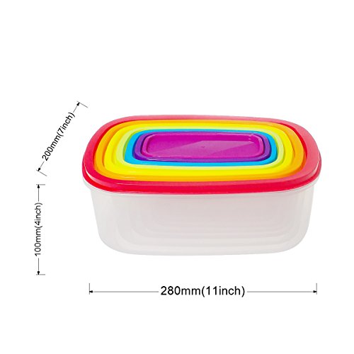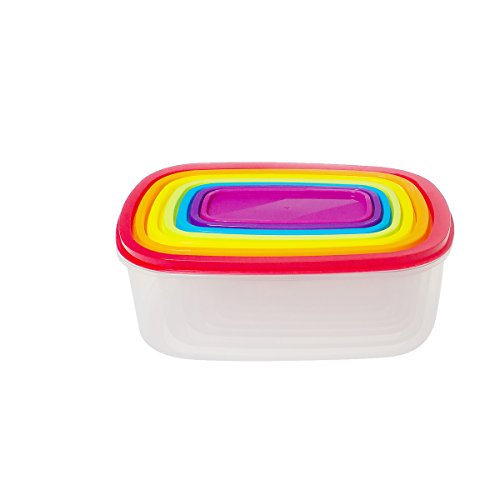 Saim Set of 7 Rectangle Plastic Food Storage Containers Kitchen Lunch Food Saver Boxes, Sets of Bowls with Colorful Lids