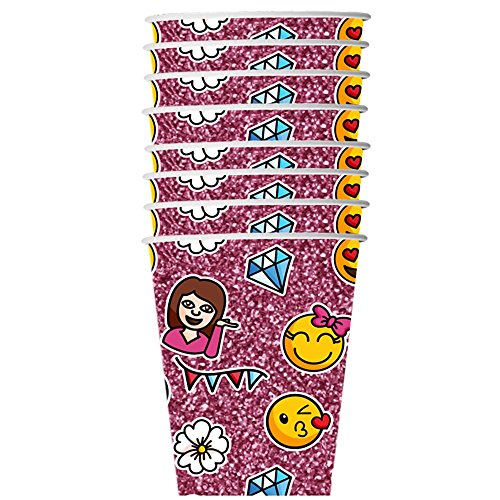 -. Feature : Girl Emoji with Faux Pink Sparkles Birthday Party Tableware Kit for 16 Guests / (16) 7 Inch (17.7cm) Paper Plates / (16) 9oz (266ml) Paper Cups / (16) Napkins (6x6in)