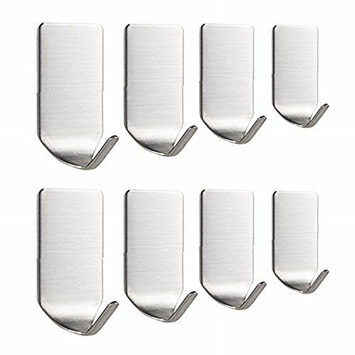 Decity 8Pcs 3M Self Adhesive Hooks, SUS304 Stainless Steel Key Robe Towel Hooks, Super Power Waterproof Heavy Duty Wall Mount Coat Hook Rack, for Kitchen Bathroom Toilet (8Pcs 3M Hook)
