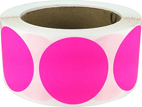 Fluorescent Pink Color Coding Labels Round Circle Dots 2 Inch 500 Total Adhesive Stickers