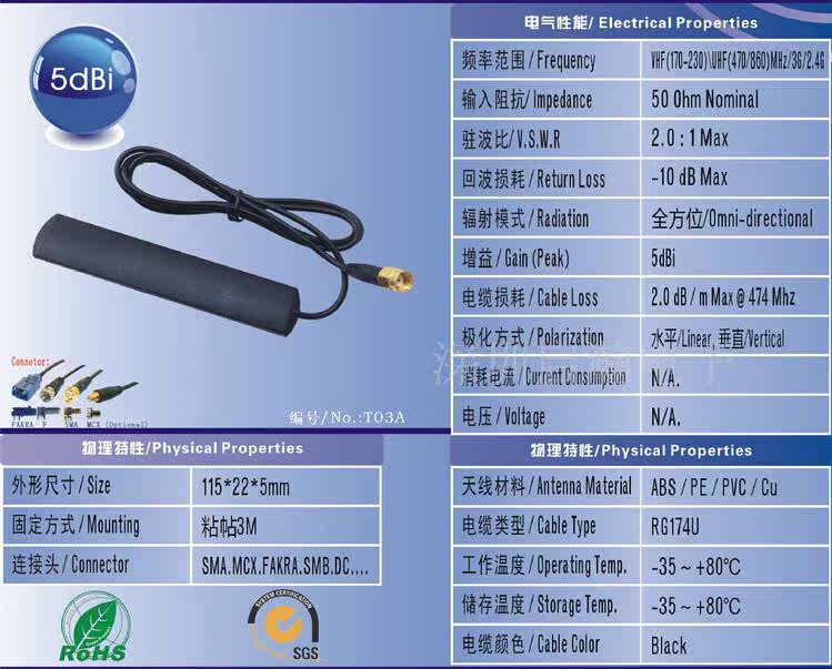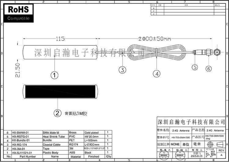 2.4G omni-directional patch antenna, the default hair 2 m SMA male snail needle