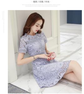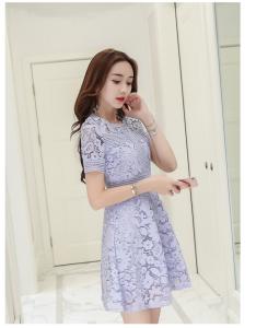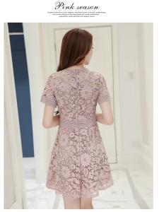半袖ワンピース 総レースワンピース ハイウエスト プチプラ ミニ丈スカート 上品 繊細 花柄レース トレンド