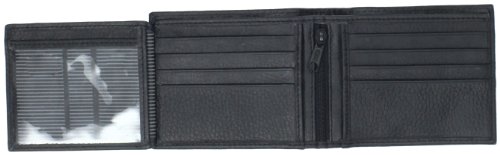 Bifold wallet features eight card slots, zipper coin pocket, a non-removable flip-out card case and fully lined bill compartment