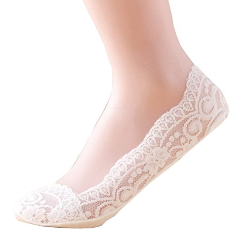 -. Feature : US Women's Size: 5 - 8.5 / Cotton material on the bottom to soak up sweat and the lace looks nice on top / Rubberized strip around the top keeps them from sliding off your heel and the silicone flowers on the bottom grip the shoe so they stay on your feet / NOTE: A hint of the lace shows when wearing some flats, ballerina flats, high heels or loafers(as shown in the picture). Please consider carefully before placing order! / Package includes: 6 pairs socks (2 black, 2 white, 2 beige) and 1 piece EPLAZA mesh washing bag (design for small items, like socks or underwear)