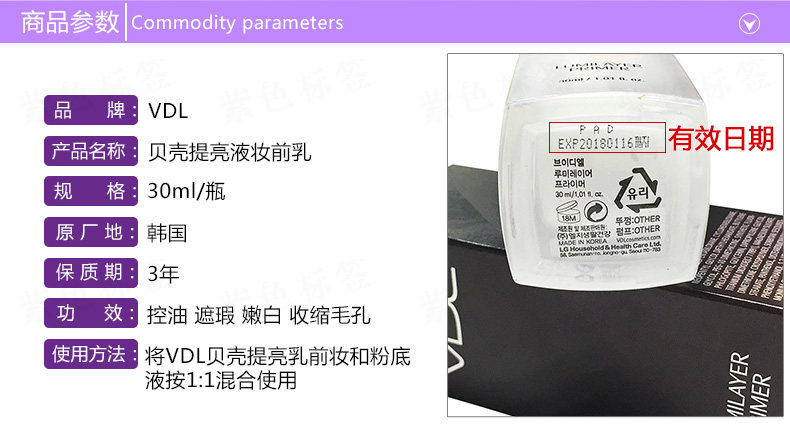 韩国VDL贝壳提亮液 妆前乳隔离美白隐形毛孔保湿控油化妆品护肤品