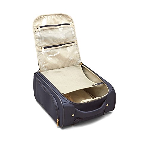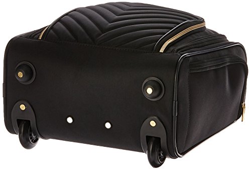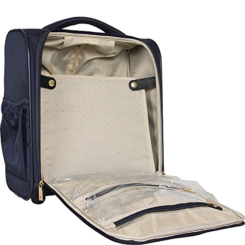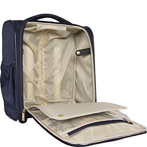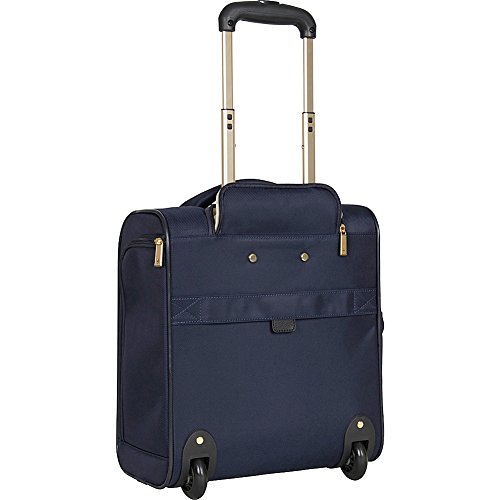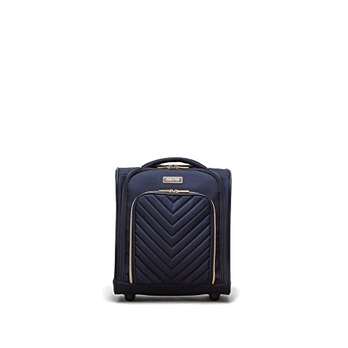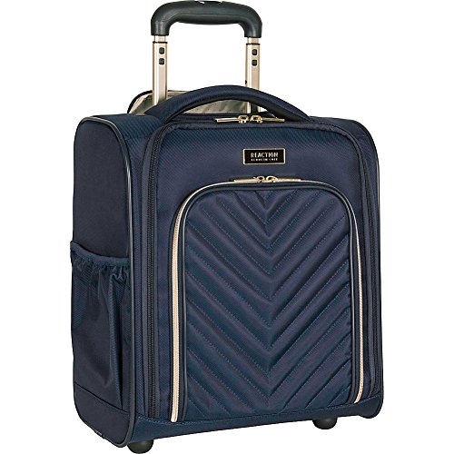 Studio : Heritage-Kenneth Cole Luggage Publisher : Heritage-Kenneth Cole Luggage Binding : Apparel Product Description Polyester-twill chevron quilted 2-wheel under seater. Lightweight construction. Poly-twill with quilted chevron exterior and fully lined interior. Front exterior features a zip down organizer with three zipper pockets to store accessories. Main zip down compartment consists of a garment panel with two wet zipper pockets. Rear exterior includes a trolley strap to fit over most luggage upright handles, for hands free carrying. Dual side exterior zippered beverage/ accessory holster pockets. Padded, easy-to-grab top handle. Sturdy front bottom feet keep bag upright and in-line skate wheels provide swift mobility. Retractable and locking trolley handle system. Manufacturer 10 year limited warranty. Overall size: 15.0" h x 13.5" w x 7.5" D. Weight: 5.65 lbs. 0