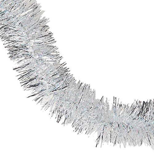 F.C. Young Unlit Soft and Silky Silver Iridescent Christmas Tinsel Garland, 12'