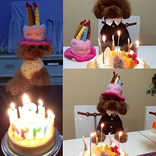 -. Title : Kaisir Dog Birthday Hat with Cake Candles Design Party Costume Accessory Headwear (One Size Fits Most) (Blue)