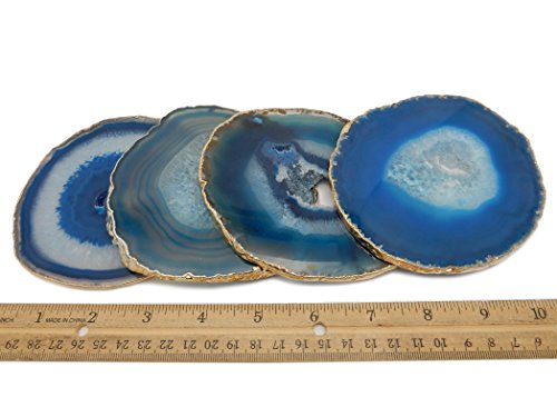 4 (FOUR) Agate Coaster - Agate Slice Coasters Rock Paradise COA (BlueGold)