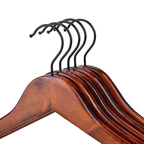 -. Title : XHSP Wooden Suit Hangers Walnut Finish with Polished Chrome Hooks,5 Pack