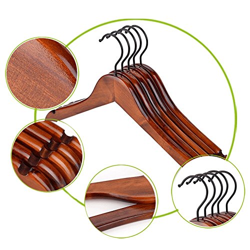 -. Feature : Not just functional hangers,but home decoration - Solid & Eco-friendly & Exquisite / Slim space-saving design keeps clothes in natural shape and maximizes your storage space / Superior Hardwood with Top Craft - Exceeded quality than other cheap hangers made of short-life wood / Strong Wood with Fancy Grain & Glossy Walnut Finish - Extremely sturdy construction with elegant style add splendor to your home / Anti-rust Hooks & Nonslip Notches & Grooved Bars - Prevent clothes from falling down and perfect for all shapes and styles of coats,shirts,pants,etc