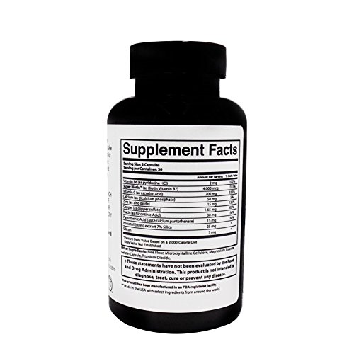 BENEFITS OF BIOTIN- Promotes the growth of long, strong and healthy hair. Offers results quickly. Most men reported a noticeable change in just 3 weeks. Boost Hair's density and offer nourishment to the scalp.