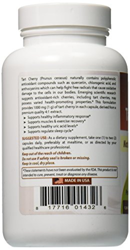 Best Naturals Tart Cherry 1000 mg 120 Veggie Capsules - Tart Cherry capsules for uric acid metabolism