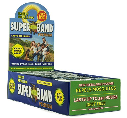 - Feature : WORLD'S #1 SELLING INSECT REPELLING WRISTBAND! Now 25 % larger and lasts 25% longer than the original Insect Repelling Superband (up to 250 hours!). Stay away from lesser quality, cheap imitation products. The Superband Premium is the original all natural wristband infused with our unique blend of insect repelling oils. DEET and toxic chemical free! / Guaranteed to stop mosquito bites! Unlike other big companies, as a growing small business we understand how important each and every purchase is, so your happiness is our number one concern. If you don't love the Superband Premiums, we'll refund you 100% of your money, no questions asked. / Insect Repelling SuperBand Premiums are infused with a special blend of natural insect-repelling oils. Just slip a band on your wrist or ankle for long-lasting, non-greasy, waterproof relief from bugs! Now comes with our new re-sealable pouch to elongate band potency! / Fully adjustable coiled band will fit everyone in your family. Fast and easy, don't waste time slathering on sticky lotions or breathing in aerosols. No mess. No fuss. / Love the outdoors but hate the bugs? Then you'll love Superband Premiums! Perfect for camping, fishing, hunting, hiking, picnics and BBQs. Also perfect for athletes on the soccer field, football field, baseball field, and even the ones in the stands! Superband Premiums make the perfect travel companion since it is not a liquid and is ultra-lightweight. Buy yours now!