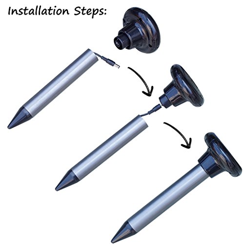 - Durability: Constructed with watertight, anti-corrosion, anti-UV aluminum spike and ABS plastic head unit, the solar sonic vole repellent is designed for outdoor pest control in patio, lawn and garden. The product life is about 2 years.