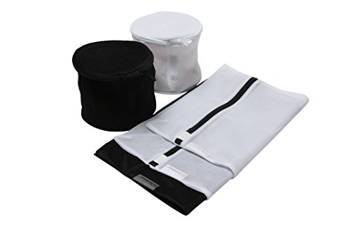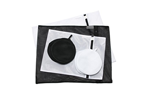 - SET OF 5 DURABLE QUALITY LAUNDRY WASH BAGS - This Premium Set includes 2 Large Bags (16" x 20") in white and black, 1 Medium Bag (12" x 16") in white and 2 (6”x 6”) Double Layered Round Bags in white and black for ALL of your laundry needs