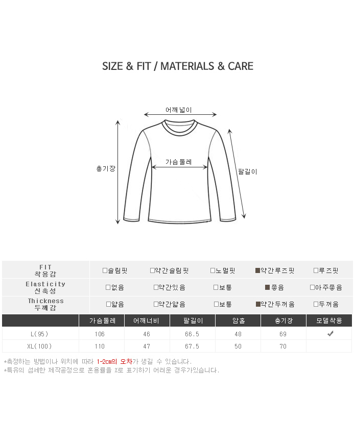-모델착용:J.S(175CM/62KG) 화이트 L(95) SIZE를 착용했습니다