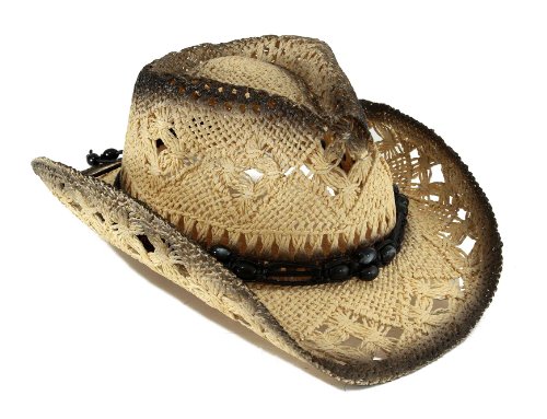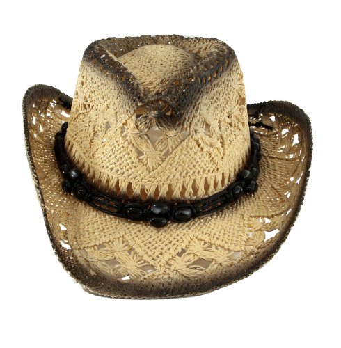 Binding : Apparel Product Description Kids Structured cowboy hat. Shaped, upturned brim. Open weave with cut outs. Teardrop Crease. Light and dark color shading. Beaded leather trim. Elastic sweat band for your kids extra comfy and secure fit.