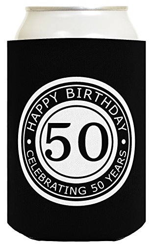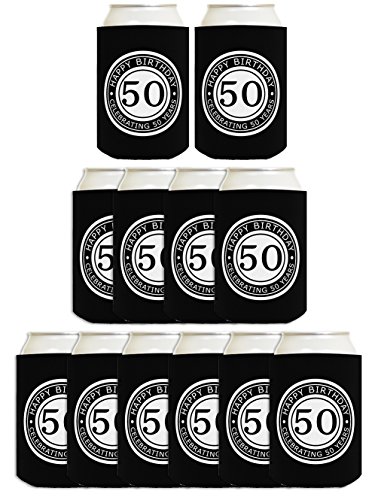 50th Birthday Gift Celebrating 50 Years 12 Pack Can Coolies Drink Coolers Black