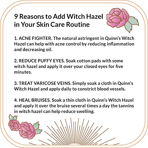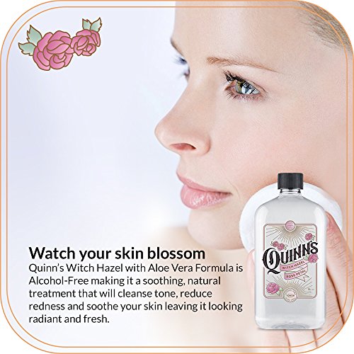 -. Feature : A bed of roses - Quinn's BEAUTIFUL, SOFT ROSE FRAGRANCE will have you feeling like you're laying amongst the ROSE PETALS. Watch your skin BLOOM! / Won't dry out - Our unique formula is NOT DISTILLED, leaving the active WITCH HAZEL within to act as an ALL-IN-ONE CLEANSER, TONER & MOISTURIZER, suitable for ALL SKIN TYPES, on ANY FACE. / Alcohol-free - That's right, an ASTRINGENT WITHOUT ALCOHOL or an UNPLEASANT ALCOHOL FRAGRANCE! Skin will be left thoroughly CLEANSED and CONDITIONED without disturbing its natural moisture. You'll be amazed at the SOOTHING, NON-DRYING nature of Quinn's. / All Natural - All of our ingredients are 100% nNATURAL, ORGANIC and FREE OF PARABENS and PROPYLENE GLYCOL, and includes our certified ORGANIC ALOE VERA. / Don't love your Quinn's Alcohol-Free Witch Hazel? We will happily give you a 100% MONEY BACK SATISFACTION GUARANTEE refund.