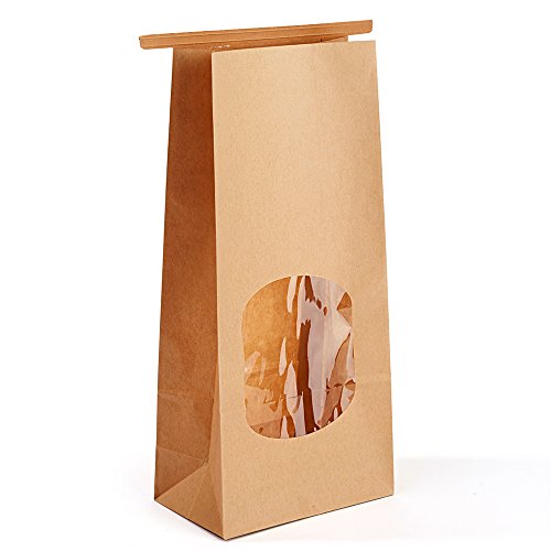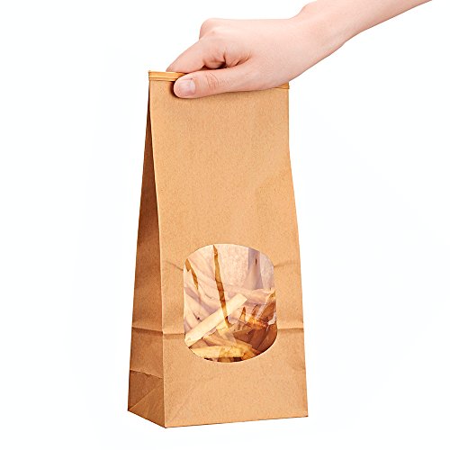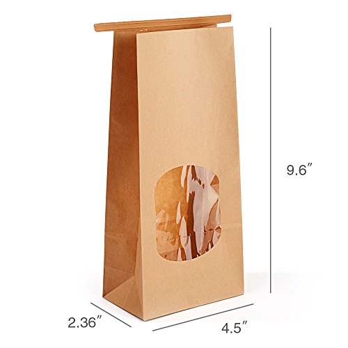Halulu Bakery Bags Paper Treat Bags Resealable Kraft Paper Bags Cookie Popcorn Bags with Windows, 4.5x2.36x9.6", Pack of 25 (Brown)