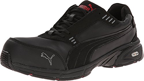 Studio : PUMA Publisher : PUMA Binding : Apparel Product Description Puma Safety Velocity SD Low Safety Toe Shoes. Puma Safety is here to change the game when it comes to job-ready shoes. Just take a look at this pair and you'll never suspect they're hiding all the safety features your jobsite demands. Wear them 9-5 then out after work and no one will know they're your "work shoes." You might even mistake them for your favorite pair of running shoes! They've got great athletic style, plus a tough, protective safety toe and a heat-resistant outsole that will stand up to brief contact with surfaces up to 572 degrees F! Plus, they're also static dissipative "SD", non-metallic and they're all-day comfortable, too. Safety first: Smooth, durable, full-grain leather uppers look great; Water repellent; Composite safety toe; BreathActive lining; evercushion GEL motion insole with open-cell design keeps you cool and dry by wicking moisture away and drying quickly; Static dissipative "SD"; Non-metallic; Heat-resistant, slip-resistant outsole; MOTION with duoCELL and Torsion Control System outsole for support and stability; Wide width for comfort. State Size. Order yours today! Men's Puma Safety Velocity SD Low Safety Toe Shoes 0