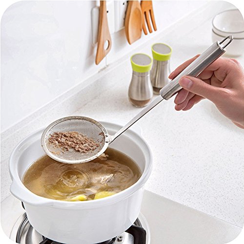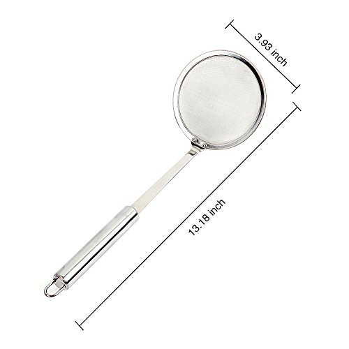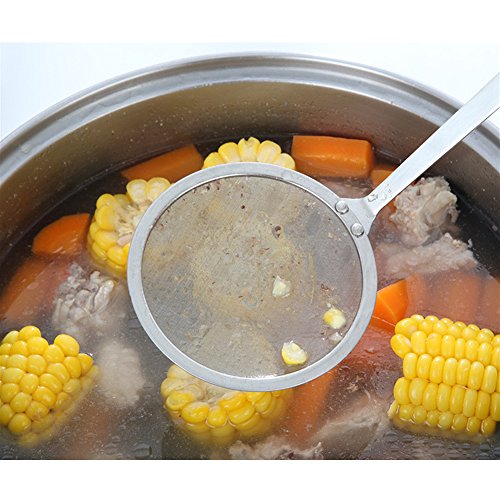 Studio : Swify Publisher : Swify Product Description Swify 4inch Filter Mesh Hot Pan Fat Skimmer, Stainless Steel Mesh Strainer for Skimming Foam Fat Grease No more floating foam grease on the hot pot top, our skimmer spoon will be good help for your kitchen Features Edible graded stainless steel that makes the fine strainer durable and safe enough. The long handles can protect your hands from hot grease and oils. Convenient hanging hole for storage. It can be hung on the wall to keep dry and clean. Easy to storage and clean up, dishwasher safe. Specification Materials: Stainless steel Length: 13inch Diameter: 4inch Package Include 1× Fine mesh skimmer About Service "Quality First, Customer First" is our target. When you purchase from our store, you will get worry-free 90 days warranty and 24h friendly customer service time 0 |